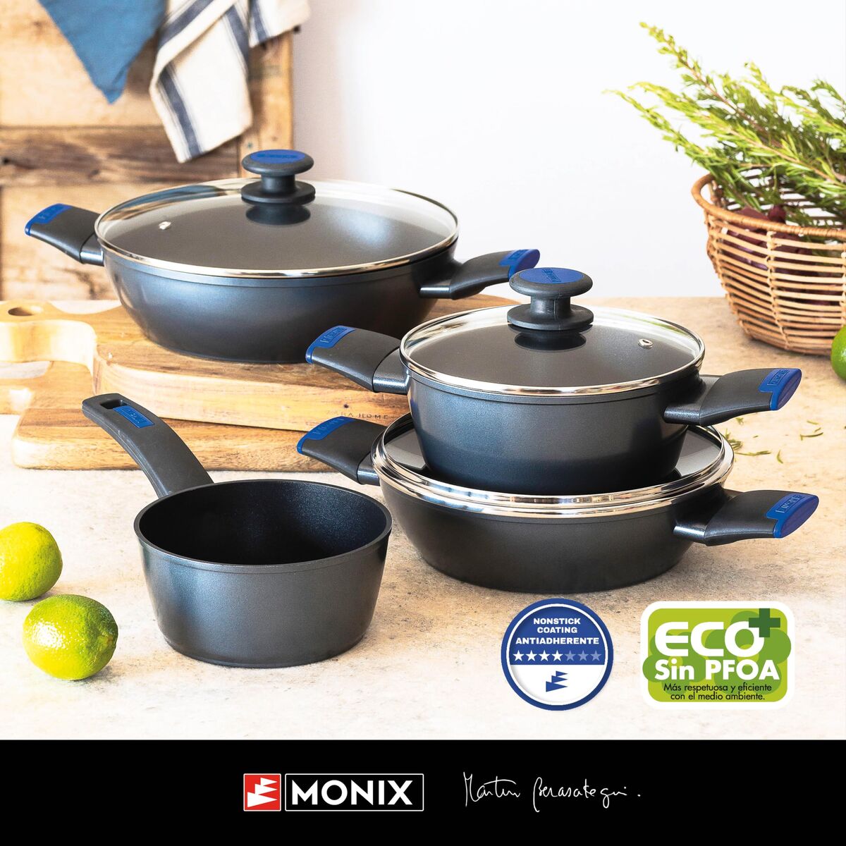 Batería de Cocina Monix Martin Berasategui Negro 7 Piezas