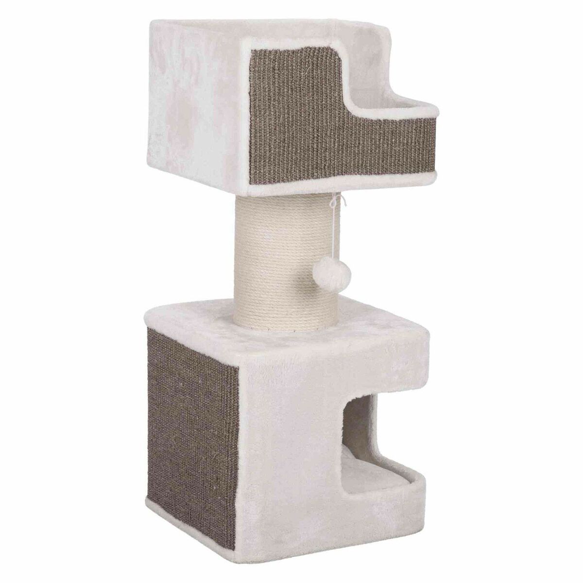 El poste rascador Acadia de Trixie es un cortaúñas diseñado para montaje en pared que presenta una altura total de 160 cm, ideal para gatos que requieren un espacio vertical amplio para estirarse y afilar sus uñas. Este modelo está elaborado con un revestimiento de felpa de poliéster gris, que proporciona una textura suave y resistente al desgaste, mientras que la incorporación de sisal natural en la superficie rascadora ofrece a los felinos un material duradero y efectivo para satisfacer su instinto de arañar, ayudando a mantener las uñas saludables. En la parte superior, el poste cuenta con una plataforma equipada con una cama blanda extraíble que puede lavarse a mano, proporcionando un lugar cómodo para el descanso del animal tras sus sesiones de juego. Su estructura está especialmente pensada para ser fijada a la pared, lo que garantiza una mayor estabilidad y seguridad, evitando que el poste se vuelque y optimizando el espacio en el hogar. El diseño del poste combina funcionalidad y estética compacta con un acabado en color gris, acorde con ambientes modernos y discretos. Con este poste rascador, Trixie ofrece una solución práctica y duradera para el cuidado y ocio de los gatos, que fomenta hábitos saludables y protege los muebles del hogar. En definitiva, el poste rascador Acadia es una opción sólida y funcional pensada para integrar en cualquier espacio, brindando confort y entretenimiento adaptados a las necesidades felinas.