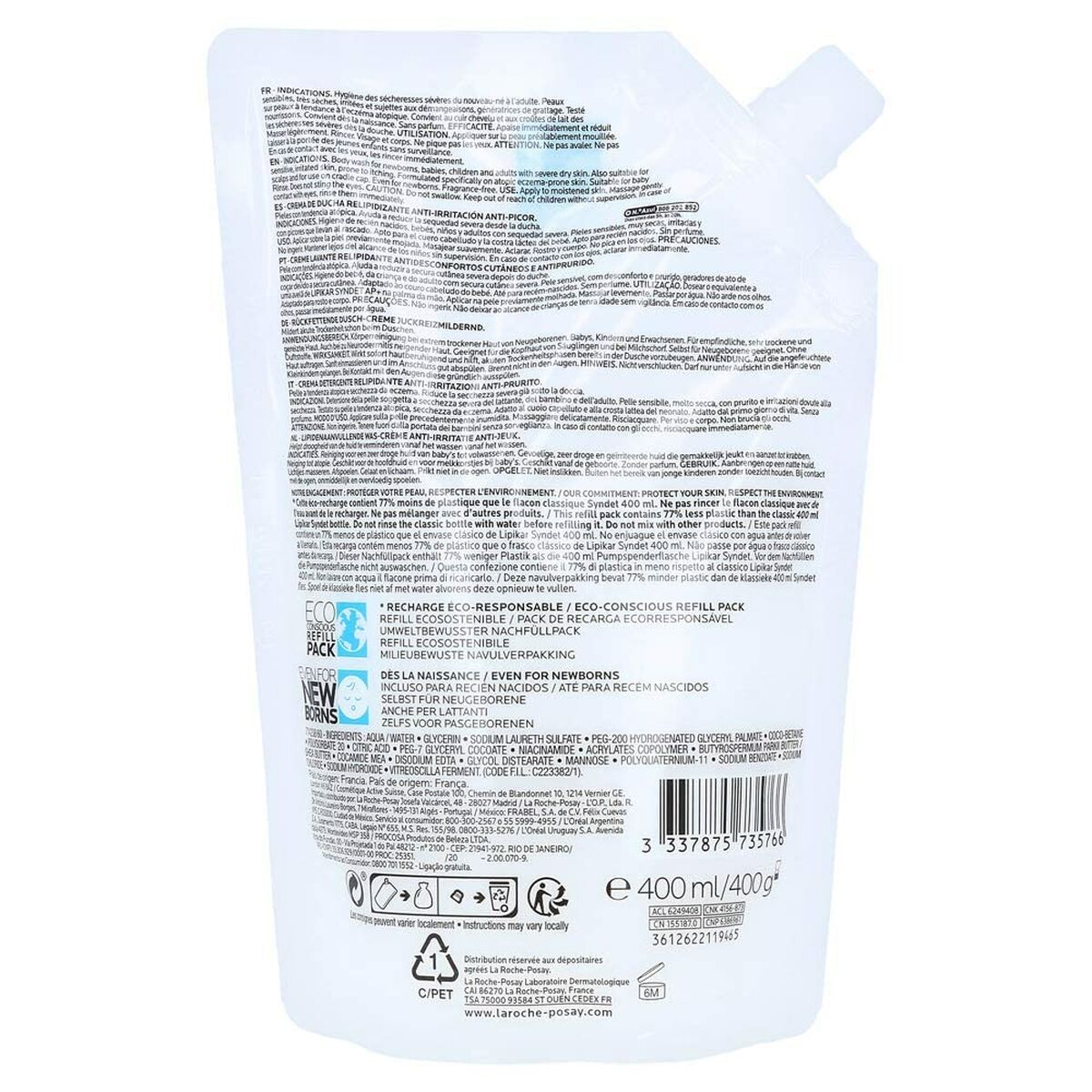 La Lipikar Syndet AP+ de La Roche Posay es una crema de ducha desarrollada especialmente para cuidar y limpiar la piel sensible y atópica, respetando su equilibrio natural gracias a una fórmula relipidizante. Este producto, fabricado en Francia, destaca por su textura en gel-crema de color blanco, fácil de aplicar y de aclarar, proporcionando una limpieza suave sin resecar la piel. Su capacidad de 400 ml asegura un uso prolongado tanto en el ámbito familiar como individual, y su formato recarga contribuye a un packaging sostenible, comprometiéndose con el respeto al medio ambiente. Entre sus ingredientes principales, se encuentran Polysorbate 20, Sodium benzoate y Sodium chloride, seleccionados para su compatibilidad con pieles delicadas y su capacidad de limpiar eficazmente sin alterar la barrera cutánea. El producto es apto para uso unisex y no contiene protección solar, orientándose exclusivamente a la higiene específica de pieles muy secas o con tendencia atópica. La Lipikar Syndet AP+ es una opción fiable y dermatológicamente recomendada para quienes buscan mantener la piel hidratada y protegida a diario a través de una rutina de higiene suave.